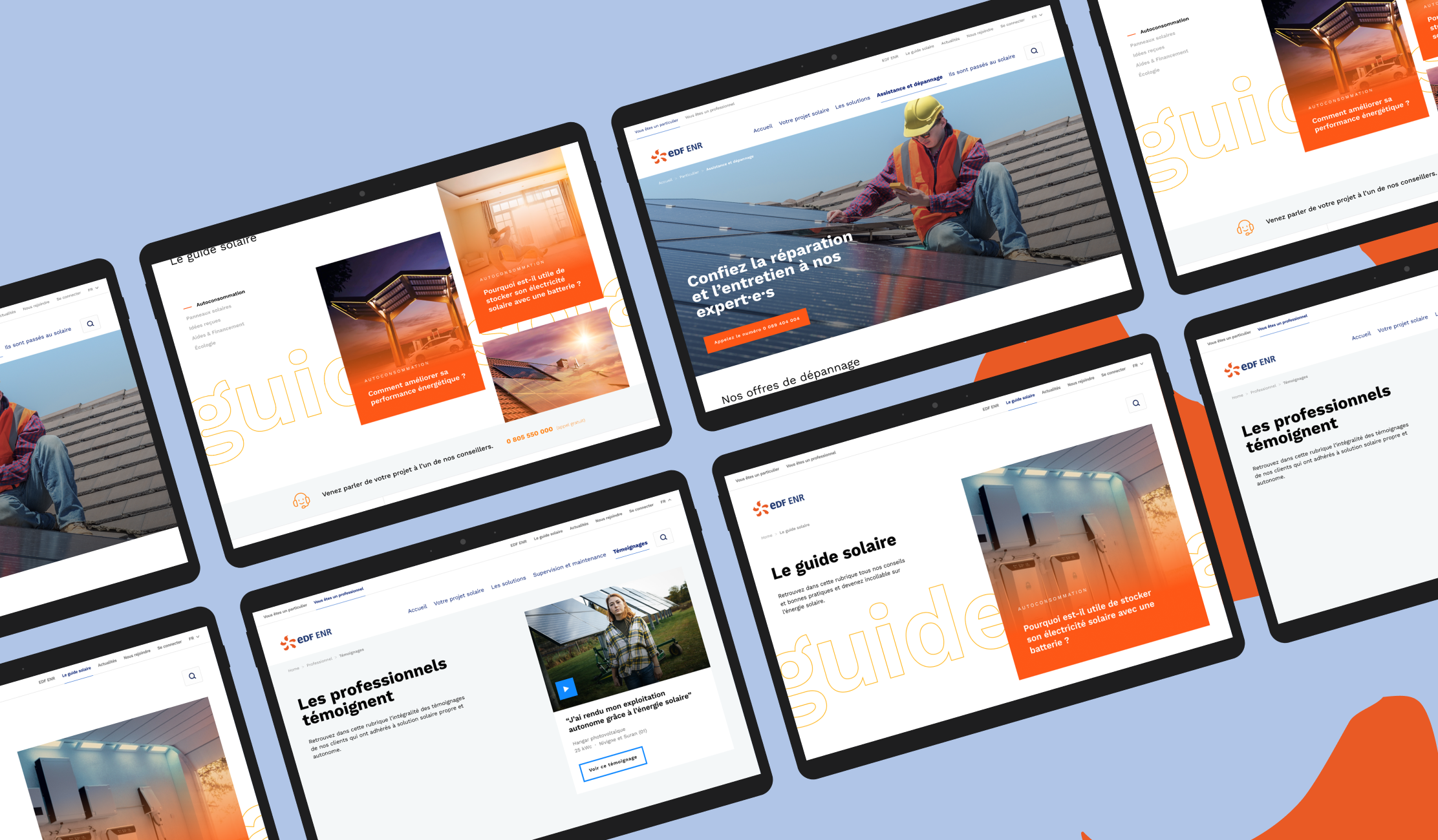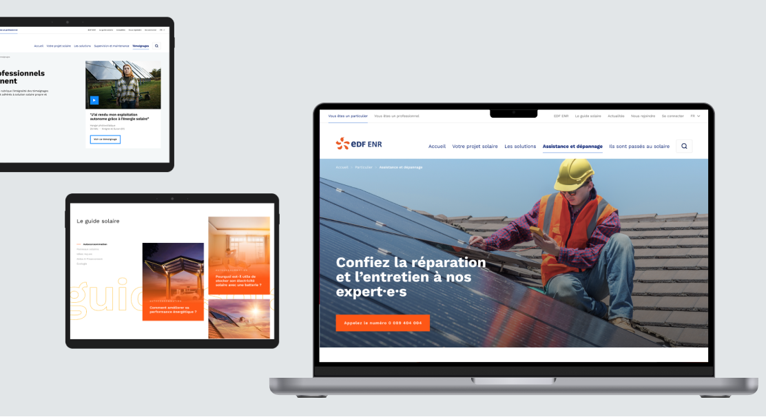 Pensé autour d’une approche UX claire et pédagogique, il met en avant les différentes offres d’installation de panneaux solaires à destination des particuliers et des professionnels, tout en valorisant les bénéfices énergétiques et économiques.